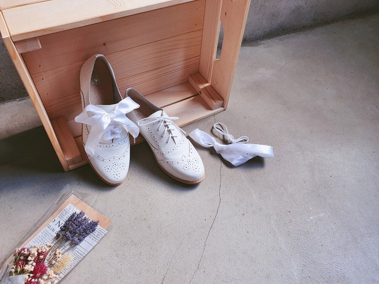 SC1011【可個人訂製】日本柔嫩羊皮2WAY兩穿緞帶雕花牛津鞋 純粹白