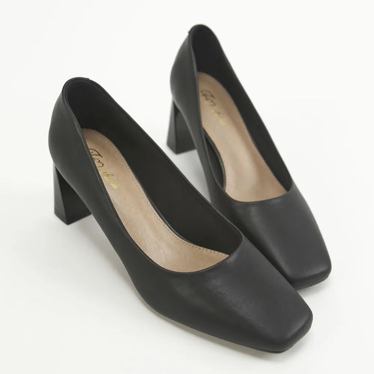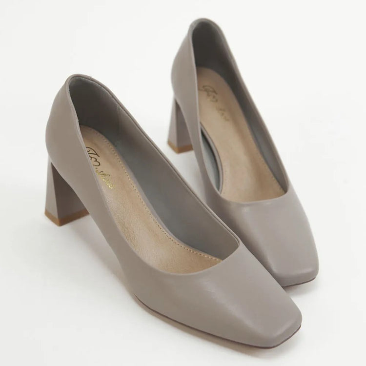 AK1319 微方頭設計感梯形粗跟鞋【防潑水】-