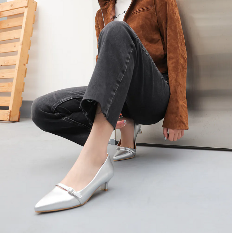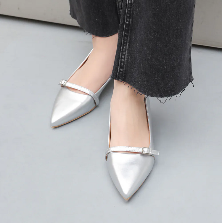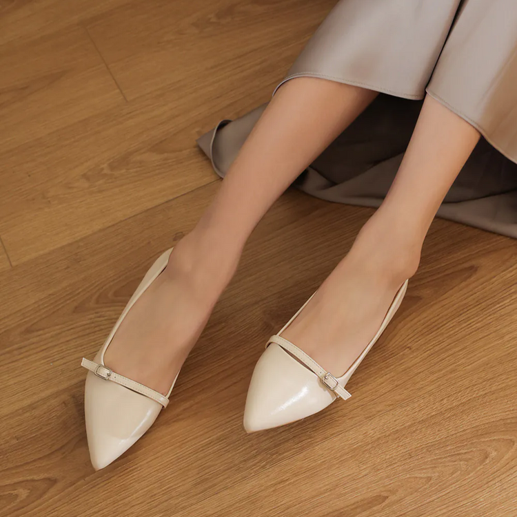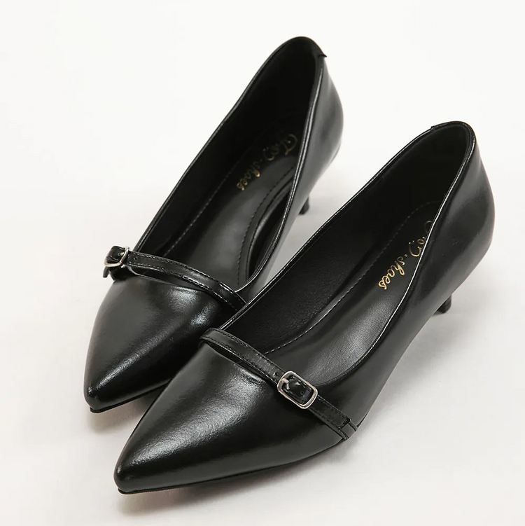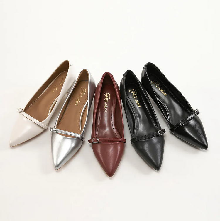 AK1358 一字釦帶尖頭低跟鞋
