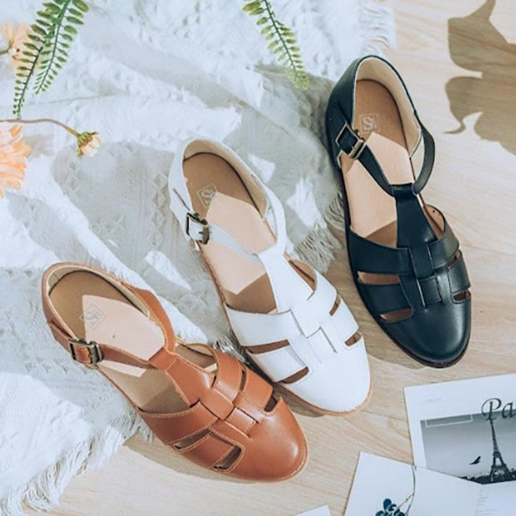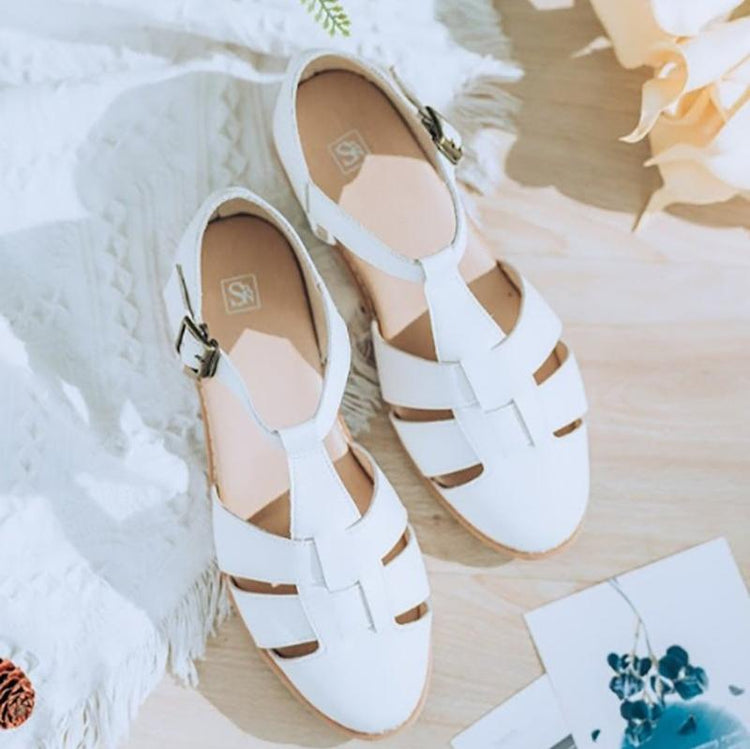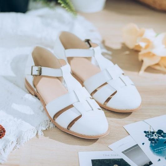SC1020 法國進口牛皮編織原木底涼鞋 白